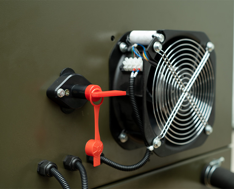 基于有限的安装空间,散热器可内置或采用分体设计。机组体积小、重量轻、噪音低、安装灵活,功率覆盖8KW至40KW。